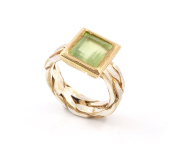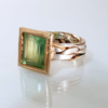 14K Gold & Sterling Silver Ring with Square Facet Green Aquamarine