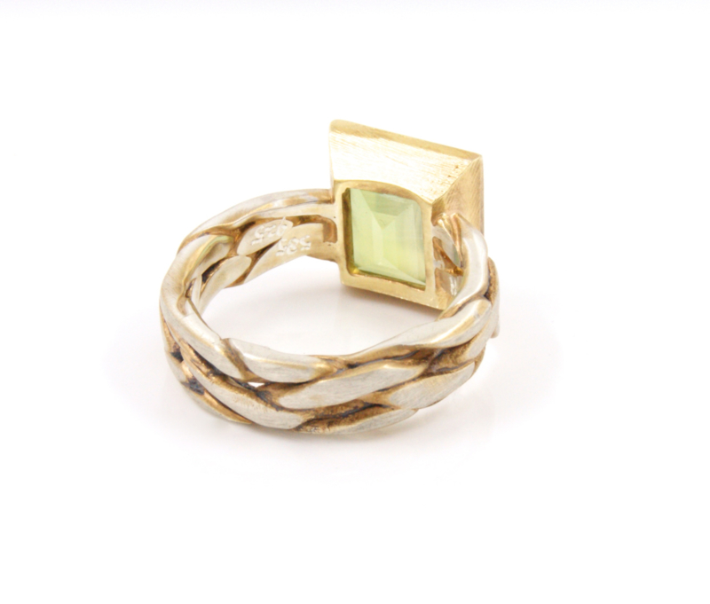The ring is raided with four silver wires and gold plated.